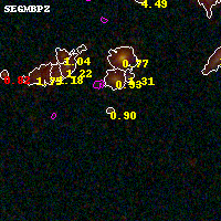 Black segments are analyzed here. Roll mouse over color images to view segments. Best viewed in a wide browser window (1200 pixels or more). Download SED & P(z) plots to view larger versions.
