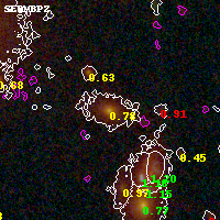 Black segments are analyzed here. Roll mouse over color images to view segments. Best viewed in a wide browser window (1200 pixels or more). Download SED & P(z) plots to view larger versions.