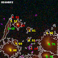 Black segments are analyzed here. Roll mouse over color images to view segments. Best viewed in a wide browser window (1200 pixels or more). Download SED & P(z) plots to view larger versions.