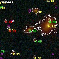 Black segments are analyzed here. Roll mouse over color images to view segments. Best viewed in a wide browser window (1200 pixels or more). Download SED & P(z) plots to view larger versions.