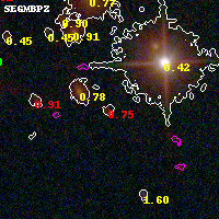 Black segments are analyzed here. Roll mouse over color images to view segments. Best viewed in a wide browser window (1200 pixels or more). Download SED & P(z) plots to view larger versions.