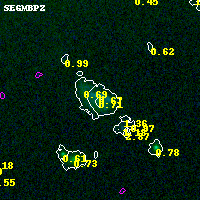 Black segments are analyzed here. Roll mouse over color images to view segments. Best viewed in a wide browser window (1200 pixels or more). Download SED & P(z) plots to view larger versions.