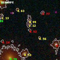 Black segments are analyzed here. Roll mouse over color images to view segments. Best viewed in a wide browser window (1200 pixels or more). Download SED & P(z) plots to view larger versions.
