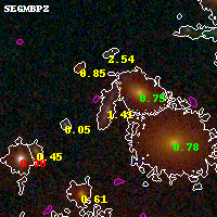 Black segments are analyzed here. Roll mouse over color images to view segments. Best viewed in a wide browser window (1200 pixels or more). Download SED & P(z) plots to view larger versions.