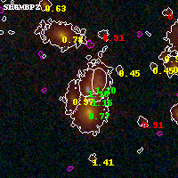 Black segments are analyzed here. Roll mouse over color images to view segments. Best viewed in a wide browser window (1200 pixels or more). Download SED & P(z) plots to view larger versions.
