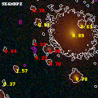 Black segments are analyzed here. Roll mouse over color images to view segments. Best viewed in a wide browser window (1200 pixels or more). Download SED & P(z) plots to view larger versions.