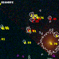 Black segments are analyzed here. Roll mouse over color images to view segments. Best viewed in a wide browser window (1200 pixels or more). Download SED & P(z) plots to view larger versions.