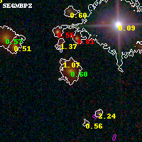 Black segments are analyzed here. Roll mouse over color images to view segments. Best viewed in a wide browser window (1200 pixels or more). Download SED & P(z) plots to view larger versions.