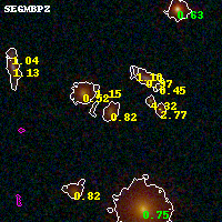 Black segments are analyzed here. Roll mouse over color images to view segments. Best viewed in a wide browser window (1200 pixels or more). Download SED & P(z) plots to view larger versions.
