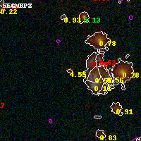 Black segments are analyzed here. Roll mouse over color images to view segments. Best viewed in a wide browser window (1200 pixels or more). Download SED & P(z) plots to view larger versions.