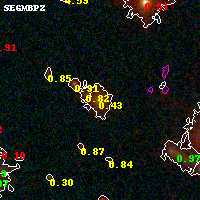 Black segments are analyzed here. Roll mouse over color images to view segments. Best viewed in a wide browser window (1200 pixels or more). Download SED & P(z) plots to view larger versions.