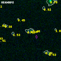 Black segments are analyzed here. Roll mouse over color images to view segments. Best viewed in a wide browser window (1200 pixels or more). Download SED & P(z) plots to view larger versions.