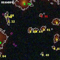 Black segments are analyzed here. Roll mouse over color images to view segments. Best viewed in a wide browser window (1200 pixels or more). Download SED & P(z) plots to view larger versions.