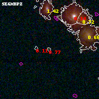 Black segments are analyzed here. Roll mouse over color images to view segments. Best viewed in a wide browser window (1200 pixels or more). Download SED & P(z) plots to view larger versions.