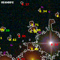 Black segments are analyzed here. Roll mouse over color images to view segments. Best viewed in a wide browser window (1200 pixels or more). Download SED & P(z) plots to view larger versions.