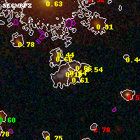 Black segments are analyzed here. Roll mouse over color images to view segments. Best viewed in a wide browser window (1200 pixels or more). Download SED & P(z) plots to view larger versions.