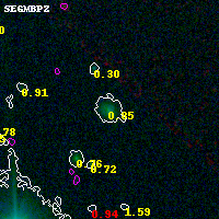 Black segments are analyzed here. Roll mouse over color images to view segments. Best viewed in a wide browser window (1200 pixels or more). Download SED & P(z) plots to view larger versions.