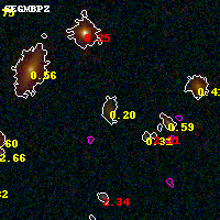 Black segments are analyzed here. Roll mouse over color images to view segments. Best viewed in a wide browser window (1200 pixels or more). Download SED & P(z) plots to view larger versions.