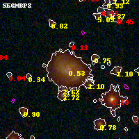 Black segments are analyzed here. Roll mouse over color images to view segments. Best viewed in a wide browser window (1200 pixels or more). Download SED & P(z) plots to view larger versions.