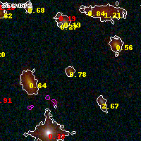 Black segments are analyzed here. Roll mouse over color images to view segments. Best viewed in a wide browser window (1200 pixels or more). Download SED & P(z) plots to view larger versions.