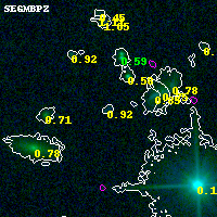Black segments are analyzed here. Roll mouse over color images to view segments. Best viewed in a wide browser window (1200 pixels or more). Download SED & P(z) plots to view larger versions.