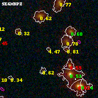 Black segments are analyzed here. Roll mouse over color images to view segments. Best viewed in a wide browser window (1200 pixels or more). Download SED & P(z) plots to view larger versions.