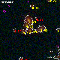 Black segments are analyzed here. Roll mouse over color images to view segments. Best viewed in a wide browser window (1200 pixels or more). Download SED & P(z) plots to view larger versions.