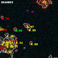 Black segments are analyzed here. Roll mouse over color images to view segments. Best viewed in a wide browser window (1200 pixels or more). Download SED & P(z) plots to view larger versions.