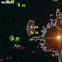 Black segments are analyzed here. Roll mouse over color images to view segments. Best viewed in a wide browser window (1200 pixels or more). Download SED & P(z) plots to view larger versions.