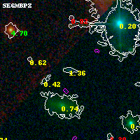 Black segments are analyzed here. Roll mouse over color images to view segments. Best viewed in a wide browser window (1200 pixels or more). Download SED & P(z) plots to view larger versions.