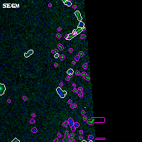 Black segments are analyzed here. Roll mouse over color images to view segments. Best viewed in a wide browser window (1200 pixels or more). Download SED & P(z) plots to view larger versions.