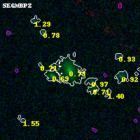 Black segments are analyzed here. Roll mouse over color images to view segments. Best viewed in a wide browser window (1200 pixels or more). Download SED & P(z) plots to view larger versions.
