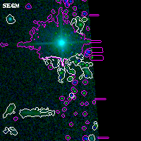 Black segments are analyzed here. Roll mouse over color images to view segments. Best viewed in a wide browser window (1200 pixels or more). Download SED & P(z) plots to view larger versions.