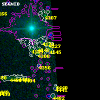 Black segments are analyzed here. Roll mouse over color images to view segments. Best viewed in a wide browser window (1200 pixels or more). Download SED & P(z) plots to view larger versions.