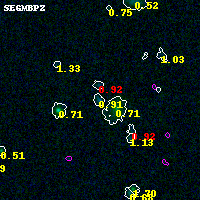 Black segments are analyzed here. Roll mouse over color images to view segments. Best viewed in a wide browser window (1200 pixels or more). Download SED & P(z) plots to view larger versions.