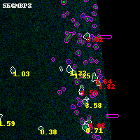 Black segments are analyzed here. Roll mouse over color images to view segments. Best viewed in a wide browser window (1200 pixels or more). Download SED & P(z) plots to view larger versions.
