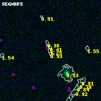 Black segments are analyzed here. Roll mouse over color images to view segments. Best viewed in a wide browser window (1200 pixels or more). Download SED & P(z) plots to view larger versions.