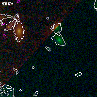 Black segments are analyzed here. Roll mouse over color images to view segments. Best viewed in a wide browser window (1200 pixels or more). Download SED & P(z) plots to view larger versions.