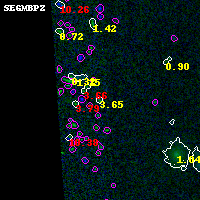 Black segments are analyzed here. Roll mouse over color images to view segments. Best viewed in a wide browser window (1200 pixels or more). Download SED & P(z) plots to view larger versions.