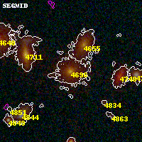 Black segments are analyzed here. Roll mouse over color images to view segments. Best viewed in a wide browser window (1200 pixels or more). Download SED & P(z) plots to view larger versions.