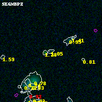 Black segments are analyzed here. Roll mouse over color images to view segments. Best viewed in a wide browser window (1200 pixels or more). Download SED & P(z) plots to view larger versions.