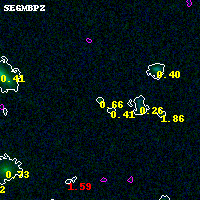 Black segments are analyzed here. Roll mouse over color images to view segments. Best viewed in a wide browser window (1200 pixels or more). Download SED & P(z) plots to view larger versions.