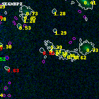 Black segments are analyzed here. Roll mouse over color images to view segments. Best viewed in a wide browser window (1200 pixels or more). Download SED & P(z) plots to view larger versions.