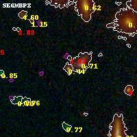 Black segments are analyzed here. Roll mouse over color images to view segments. Best viewed in a wide browser window (1200 pixels or more). Download SED & P(z) plots to view larger versions.