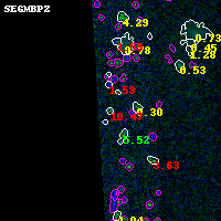 Black segments are analyzed here. Roll mouse over color images to view segments. Best viewed in a wide browser window (1200 pixels or more). Download SED & P(z) plots to view larger versions.