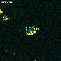 Black segments are analyzed here. Roll mouse over color images to view segments. Best viewed in a wide browser window (1200 pixels or more). Download SED & P(z) plots to view larger versions.