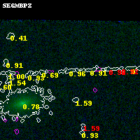 Black segments are analyzed here. Roll mouse over color images to view segments. Best viewed in a wide browser window (1200 pixels or more). Download SED & P(z) plots to view larger versions.