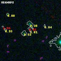 Black segments are analyzed here. Roll mouse over color images to view segments. Best viewed in a wide browser window (1200 pixels or more). Download SED & P(z) plots to view larger versions.