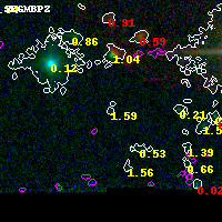 Black segments are analyzed here. Roll mouse over color images to view segments. Best viewed in a wide browser window (1200 pixels or more). Download SED & P(z) plots to view larger versions.