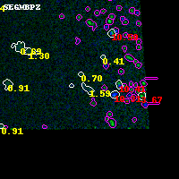 Black segments are analyzed here. Roll mouse over color images to view segments. Best viewed in a wide browser window (1200 pixels or more). Download SED & P(z) plots to view larger versions.